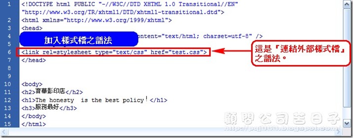 圖3  <background-image>屬性之輸入語法(採用『內嵌宣告』之方式)